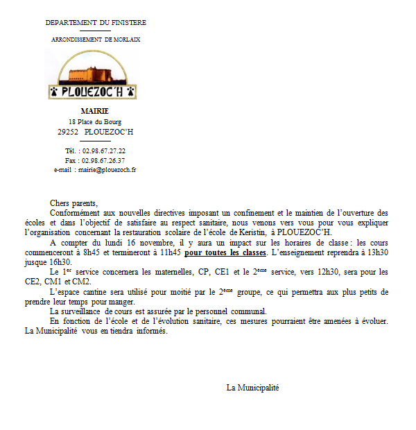 En cas d’impossibilité de communication numérique, prendre contact avec la Mairie
